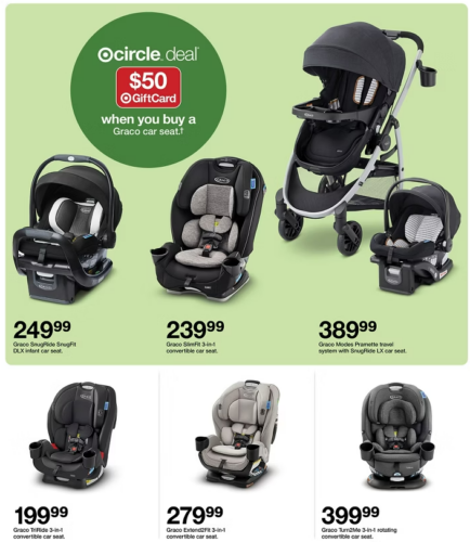 Receive a $50 Target Gift Card when you buy a Graco Car Seat.